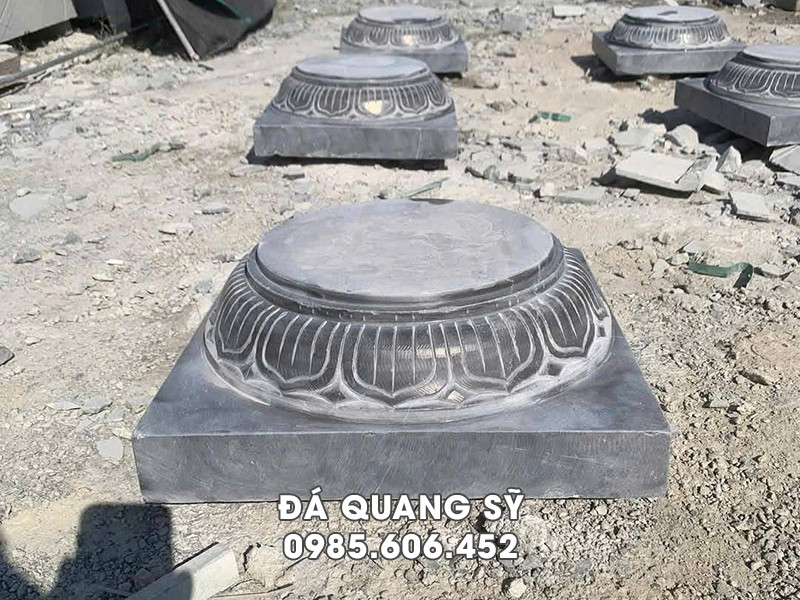 Sản phẩm thường được làm từ đá xanh Ninh Bình, đá xanh rêu hoặc đá granite theo yêu cầu. Kích thước được gia công theo đường kính chân cột và thiết kế tổng thể của công trình, đảm bảo độ cân đối và tính thẩm mỹ cao.