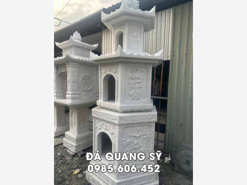 Mẫu Mộ tháp đá trắng, hay còn gọi là Bảo tháp đá trắng, là một trong những sản phẩm nổi bật trong lĩnh vực đá mỹ nghệ, mang đến không chỉ giá trị thẩm mỹ mà còn chứa đựng ý nghĩa văn hóa sâu sắc. Với thiết kế 3 tầng mái, mẫu mộ này không chỉ thể hiện sự trang nghiêm mà còn mang lại cảm giác thanh tịnh cho không gian xung quanh.